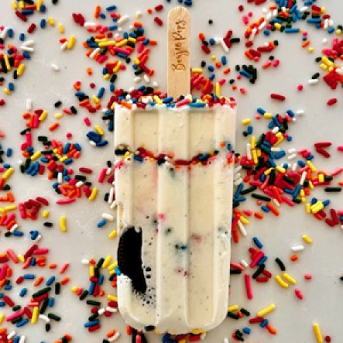 Tastes just like cake and stuffed with an Oreo. Plant based milk, vanilla bean, lots of soft vegan jimmies.